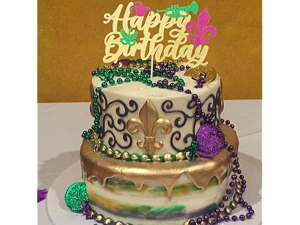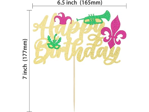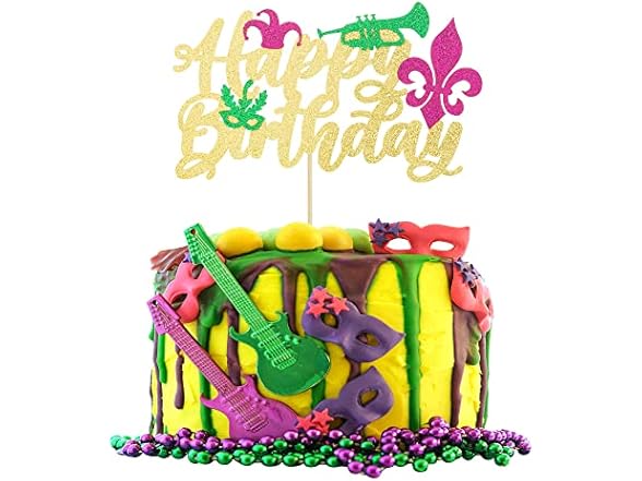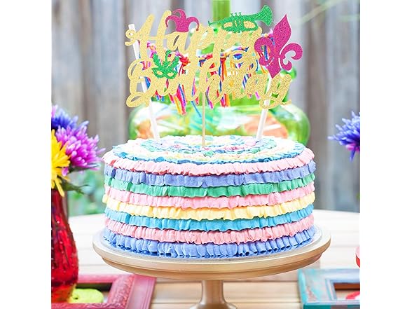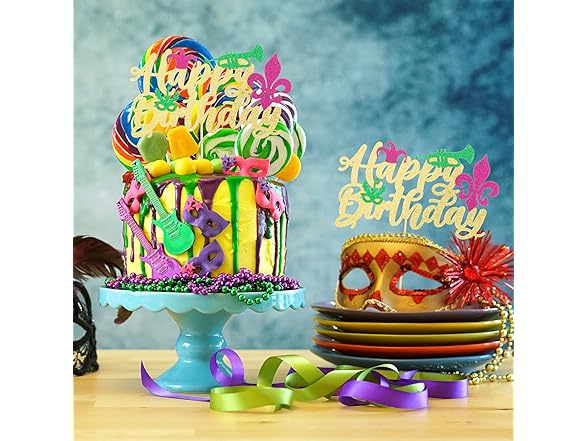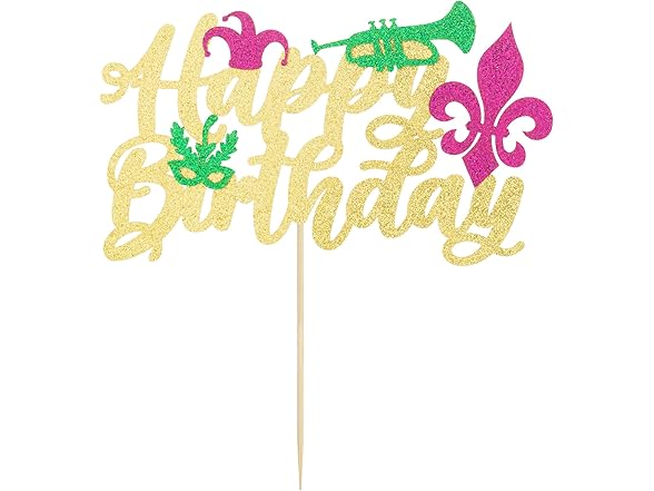 Gyufise 1 Pack Glitter Masquerade Mask Cake Topper Glitter Mardi Gras Birthday Cake Topper Happy Birthday Cake Topper for New Orleans Carnival Themed Birthday Party Decor Decorations