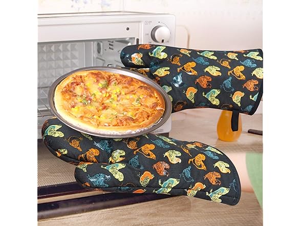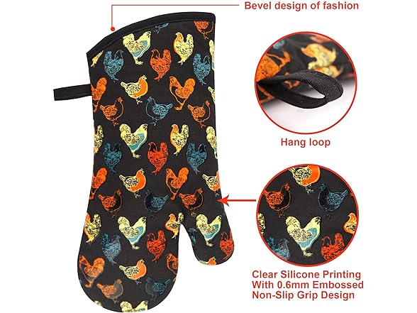 - 3. Extra long size: the oven glove size is 7"X14", with silicone transparent printing on front and back side, which is convenient for both right and left hand, makes it muti-function.