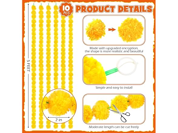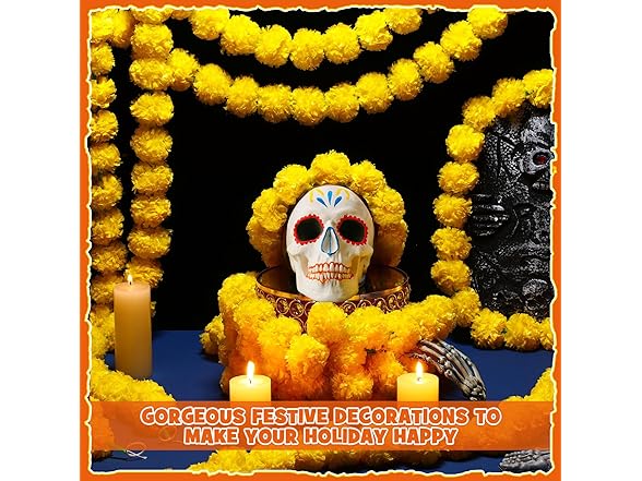 - Lifelike and Lively Design: the Day of the Dead artificial flower garland has bright colors and plump flowers, which looks like a real marigold; You just need to wrap it in a suitable position, even those without installation experience can easily complete the layout work