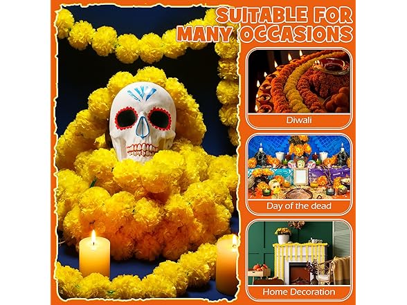 - Multiple Usages: this artificial garland is suitable for Day of the Dead, Diwali, Halloween, birthday parties, dinners, weddings, or other celebrations; You can hang it in corridors, arches, terraces, windows, gardens, balconies, altar, and other places