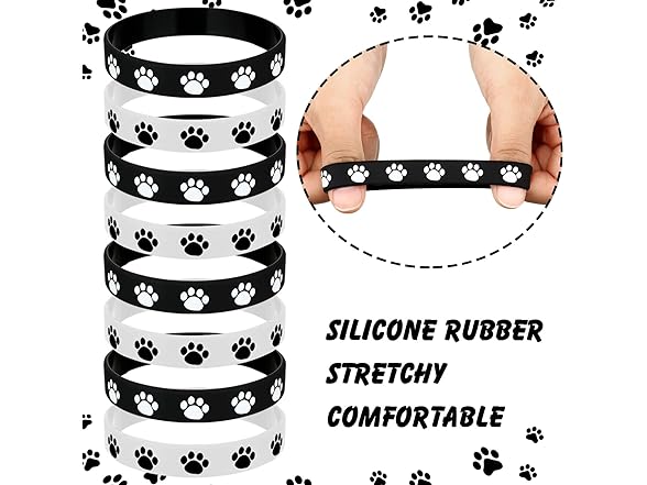 • What You Will Get: you will get 100 pieces of dog paw silicone bracelets, 2 colors, each style has 50 pieces, you can choose the style you like to use; Sufficient quantity will meet your using needs, and you can share them with your family
