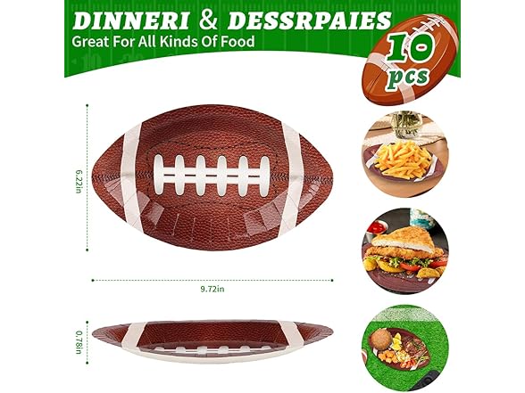 10PCS Football Party Paper Plates, Disposable Football Shaped Plates, Perfect for Super Bowl Game Day Birthday Party Supplies Decorations