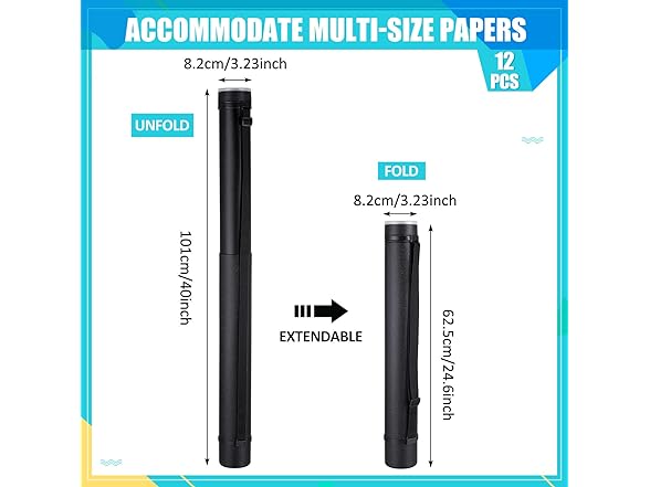 - Adjustable Size: each tube can expand from 24.5 inches to 40 inches in length, with an external diameter of 3.4 inches; This makes them long enough to store your documents and artwork, while still being portable