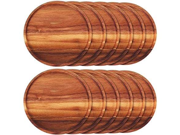- Natural Acacia Wood: made of acacia wood and coming with nice workmanship, these acacia round plates are made from several pieces of wood that are put together to better prevent warping, reliable and safe for food, these plates are ideal for dinner, fruit and cake