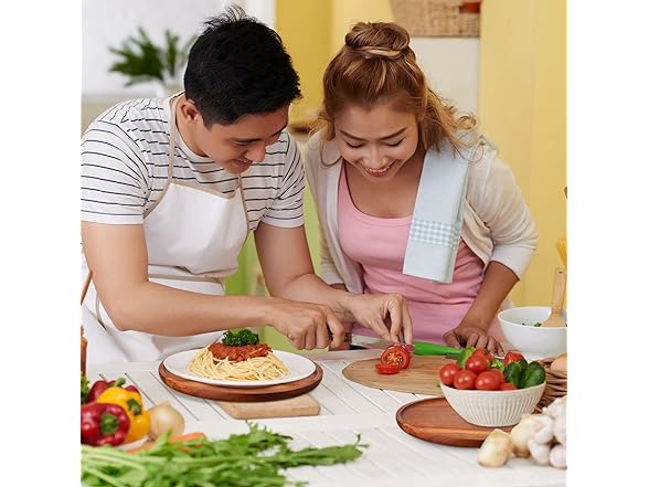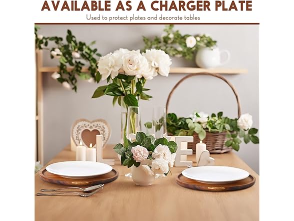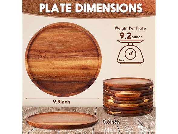 - Multi Use: the exquisite design will add a touch of elegance and class to your table setting, these acacia round wood plates set can work as an entree plate, round charcuterie board, serving platter or plate chargers, the plates can be applied as wooden trays for decor or Christmas dishes
