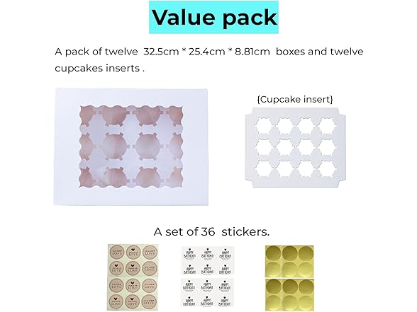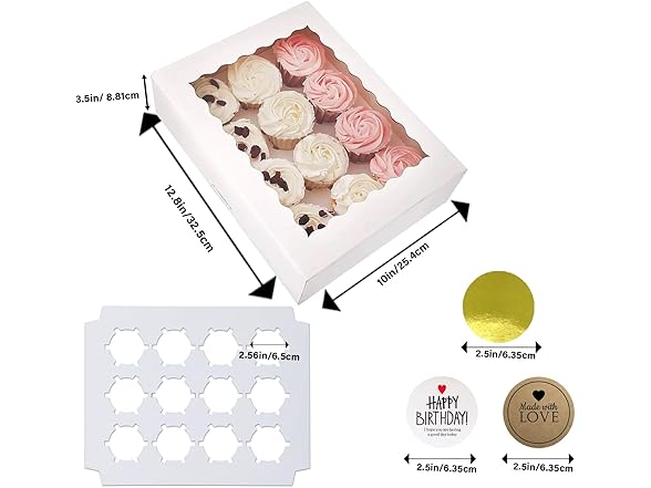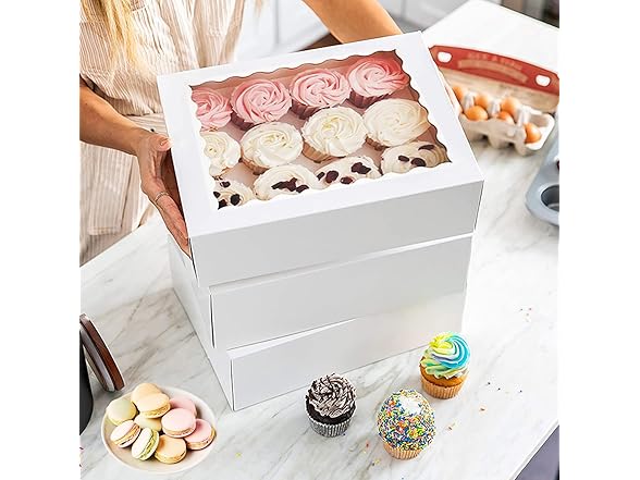 12 Set White Cupcake Boxes Container,Holds 12 Cupcakes,Bakery Cupcake Box With Window and Cupcake Insert,Pastry,Pie,Dessert,Donuts,Birthday,Graduation,Cookies,Holiday (White -12 Pack)