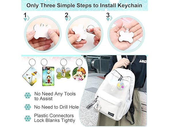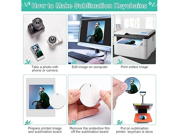 - Easy to Use Sublimation Blank - Set the temperature of transfer machine as 190℃ / 374°F for 40 seconds, which is suitable for heat press transfer; these sublimation blank keychains have protective layer on both sides to prevent scratches, you can print on 2 sides, please tear off the layer before DIY, and you can start to create some pretty handicrafts in your own style.