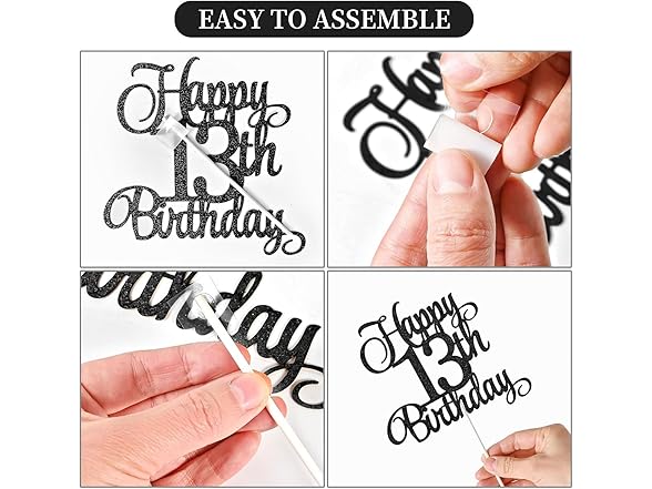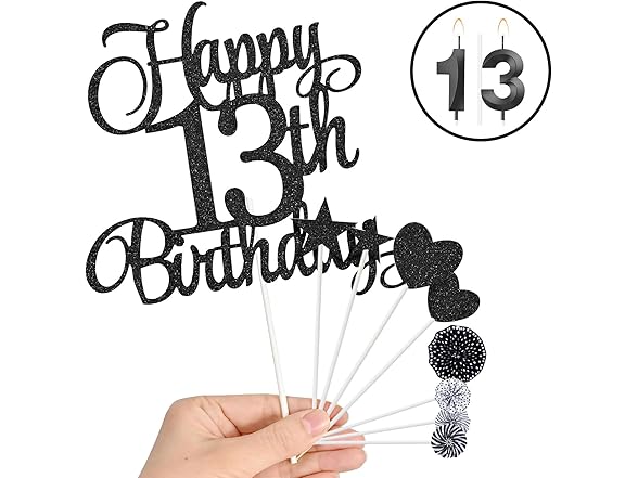 13th Birthday Cake Decorations, 13th Birthday Candles Cake Numeral Candles and Glitter Happy 13th Birthday Cake Toppers Set for Birthday Party Supplies (blck)