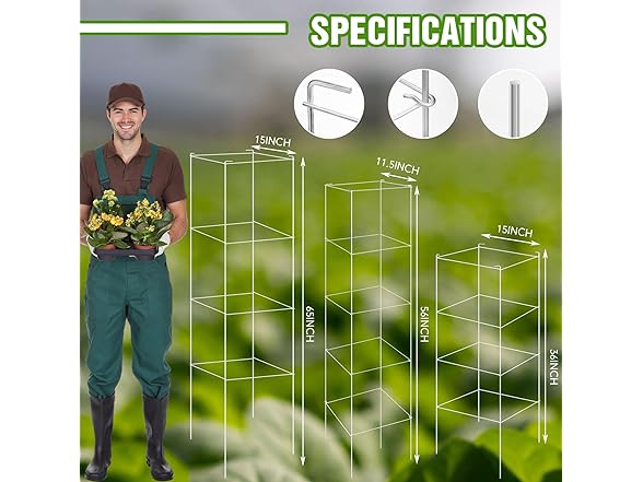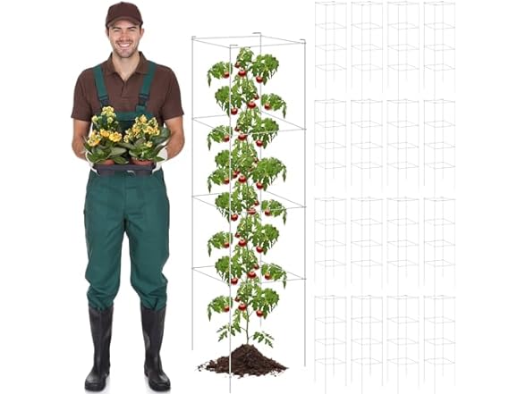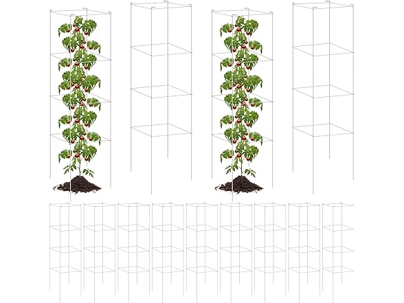 - Wide Range of Application: with our square tomato cages, your climbing plant will not easily drop or be blown over by the wind due to the fruits coming in crowds, and also keep fruits off the ground to avoid rot and animal; Nice for the growth of zucchini, strawberries, raspberries, cucumbers, tomato plants, eggplants, peppers, peas, beans, climbing flowers, etc