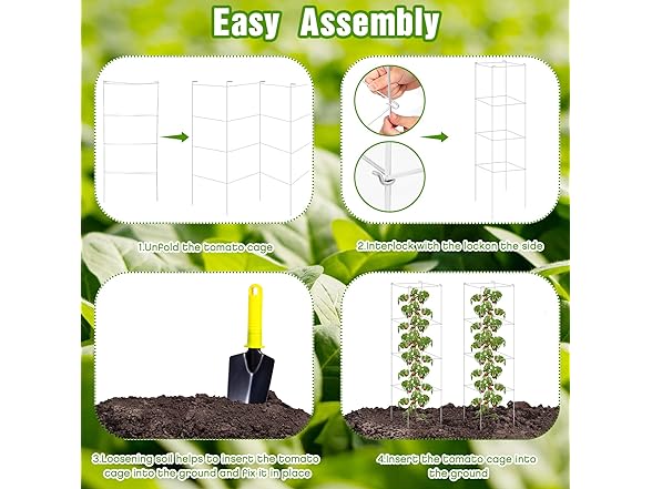 - Space Saving: each tomato plant cage can be folded flat into a quarter of the size to be stored at any corner; Besides, you can DIY assemble the folding plant support into different shapes, irregular, half-folded, tiled, and triangle to maximally utilize the space of your garden