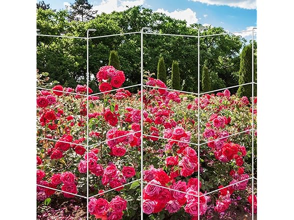 - Easy to Install: this 16-piece plant support stake tower can be set up quickly and effortlessly with no tools required and to insert the four steel stakes into the ground; With staggered lock design of each corner, you can easily connect each panel; We recommend inserting it into the soil about 4-6" to make it stable