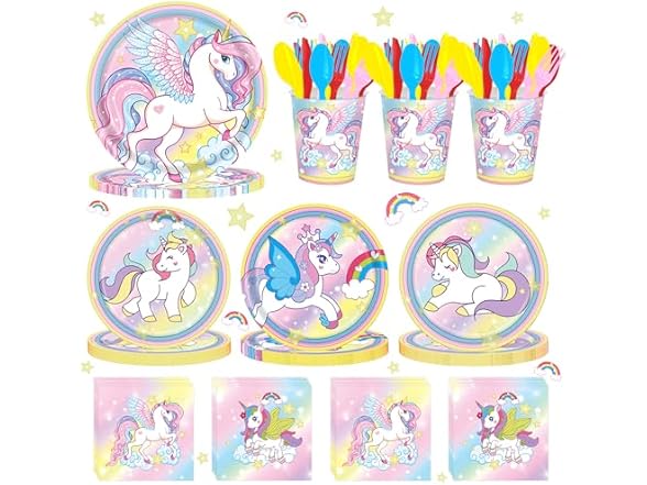- 【Customer Satisfaction】: Our unicorn birthday party supplies a complete set of tableware that can be served by 24 guests at the same time;If you encounter any unicorn tableware set issues or have any concerns with the product you received, please don't hesitate to contact us.We will promptly address and resolve any problems to ensure your satisfaction.