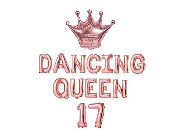 18" Rose Gold Dancing Queen 17 balloons Princess Balloon Banner 17th Birthday Party Balloons 17 Birthday Decorations Supplies