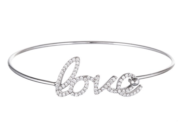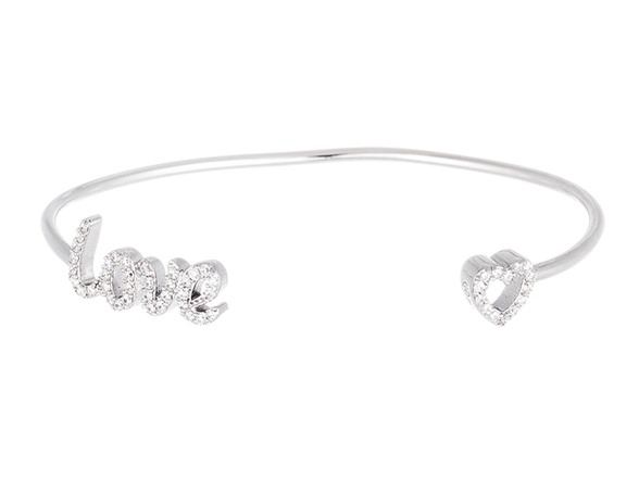 Bliss - NG302251R-Z - 18K Plated Sterling Silver CZ "Love" Heart Endcap Cuff Bangle