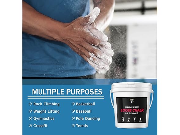 - 【No MORE GRIP PROBLEMS】This gym chalk brings you more friction, make your equipment less slippery and avoid slips & falls. Do you wanna more good performance? Our Chalk powder is right here.
