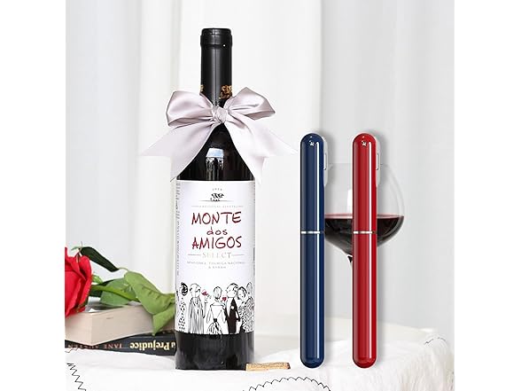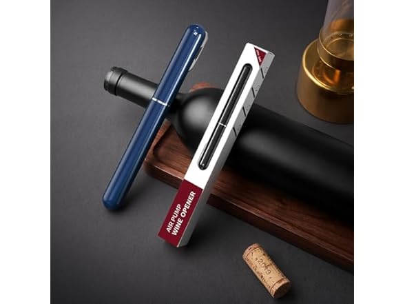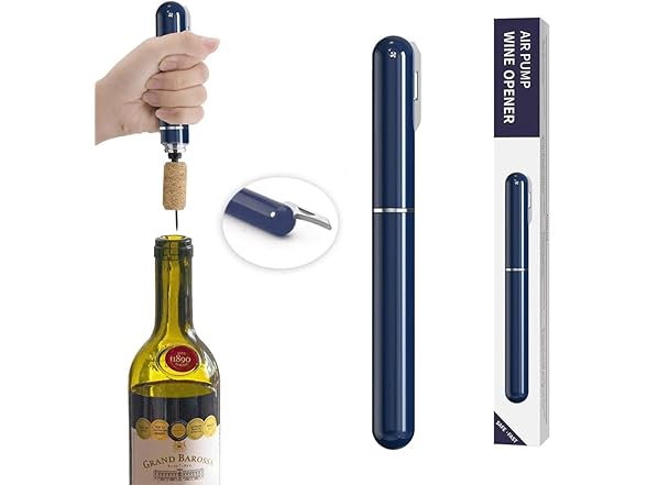 2-in-1 air pressure wine opener with cutting bottle aluminum foil knife air pump portable travel wine opener cork remover (four-color) (blue)
