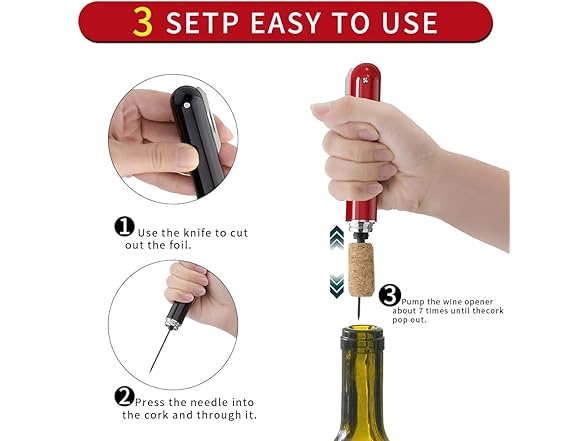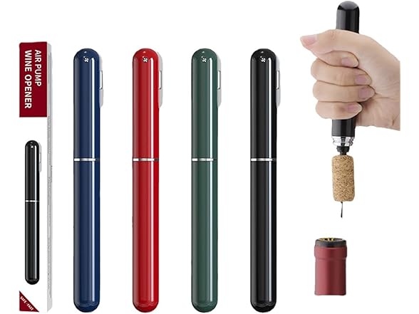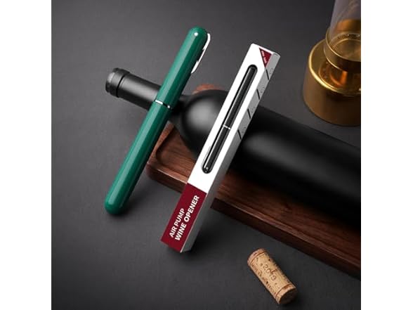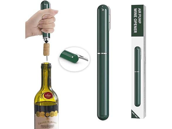 2-in-1 air pressure wine opener with cutting bottle aluminum foil knife air pump portable travel wine opener cork remover (four-color) (green)