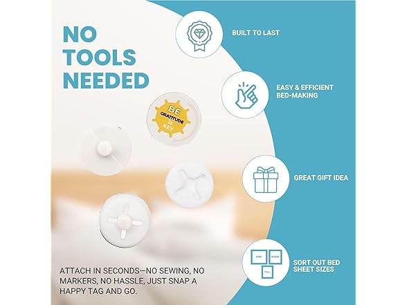 2 in 1 Bed Sheet Marking Tags - King, Queen or Full. for Each Size, Choose a Design. Plus Quick Identification to Put Your Bed Sheets on Right. Great Gift Ideas! #1 in Tags/Sheet Snaps. (Gratitude)