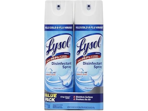 In the Box:- (2-Pack) Lysol Disinfectant Spray, Crisp Linen, 19 oz