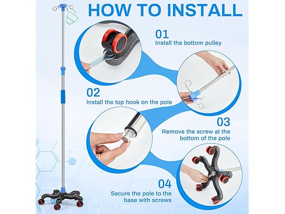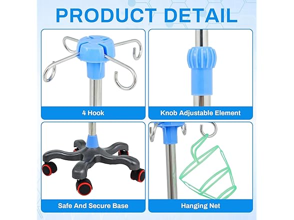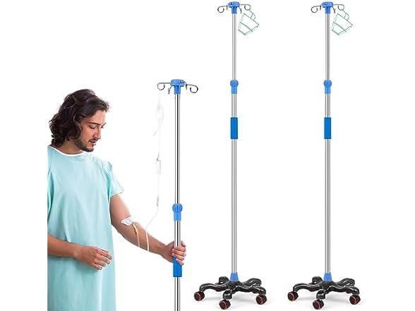 2 Pack Rolling IV Pole Stand Rack