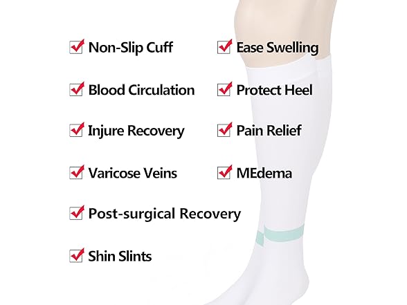 - Practical Function: TED hose socks are carefully designed with the 15-20 mmHg moderate compression to offer a strict compression level on each key measuring point, which can provide you appropriate support and stretch, and can help to improve circulation, relieve slight swelling and soreness of the legs