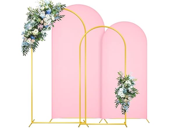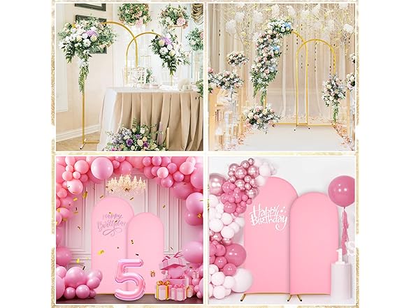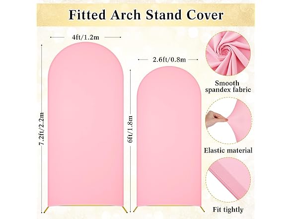- Value Set: this set includes 2 wedding arch frame stands and 2 pink arch backdrop cover, available in 2 sizes: about 7.2 x 4 feet and 6 x 2.62 feet (H x W); This nice wedding decoration solution is affordable and can meet your different usage needs