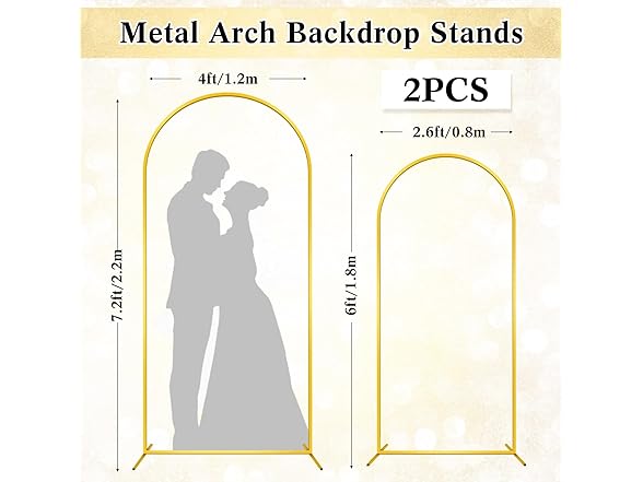 - Pretty Metal Arch Stand: the backdrop stand is made of sturdy metal pipes, finely welded, with a glossy surface that is resistant to rust and peeling; The bottom is equipped with a crossbar to enhance its stability; The delicate arch design makes it the ideal background decoration for any special occasion