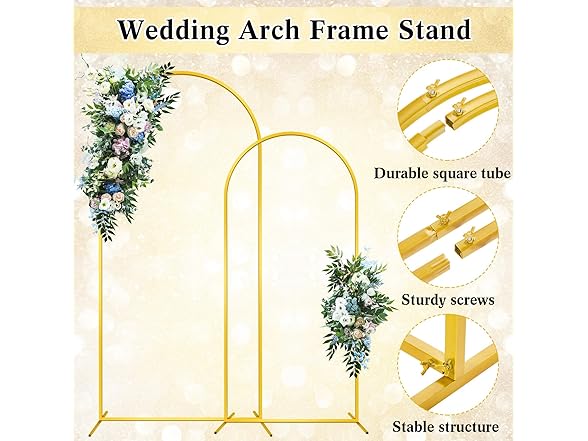- Versatile Decoration: in addition to the covers, the gold arch frame can be adorned with balloons, plants, bouquets, and more, allowing you to create elegant background decorations; It serves as the nice backdrop not only for weddings but also for baby showers, birthday parties, various events, and festivals