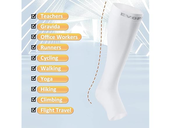 EVOPLECI 20-30mmhg White Compression Socks for Women Nursing and Man Tight Stockings Support Socks for Women Compression Varicose Veins,Running,Nursing,Athletic Sports (TALL WHITE M)