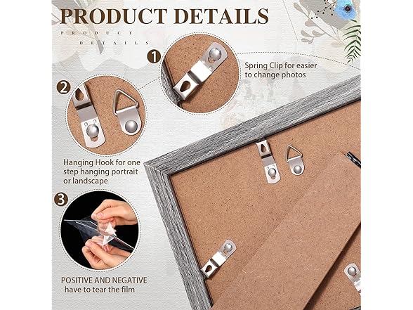 - Effortless Convenience: equipped with handy clips and cardboard backing, the photo frame set for wall gallery decor makes loading or replacing photos a breeze; The high definition acrylic not only enhances the clarity of the photos but also safeguards them from dust, scratches, and dampness, ensuring your happy moments remain untarnished throughout the years
