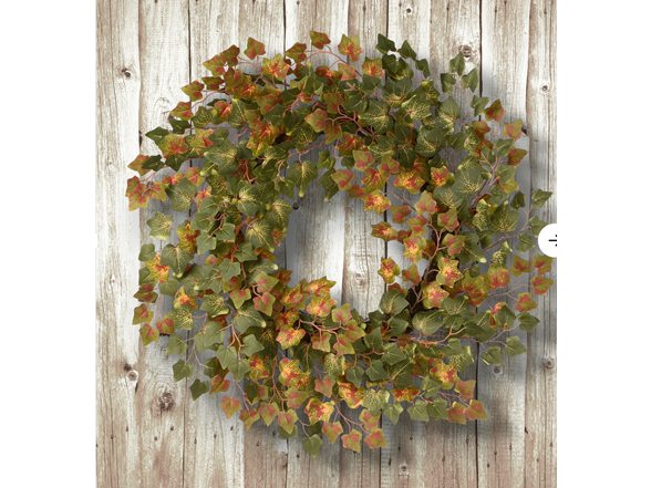 Welcome the fall season through your front door or window display with National Tree Company's Artificial Autumn Wreath. Designed with a woven branch base, this wreath is 24 inches wide and decorated with beautiful, authentic feeling harvest ivy.