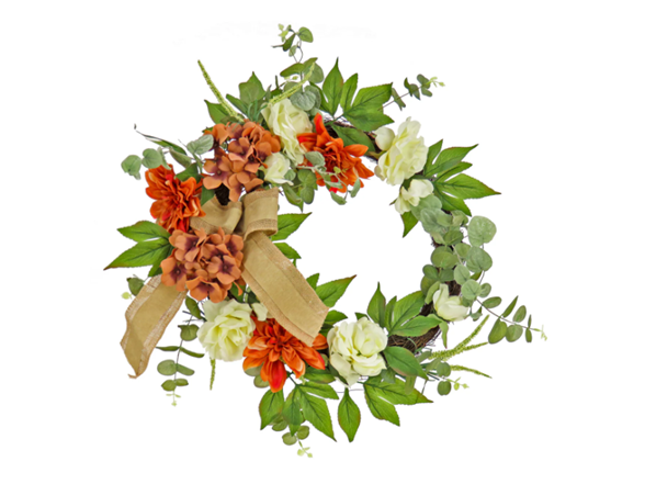 National Tree Company 24" Harvest Decoration- Wreath with Hydrangea & Rose- Pack 1