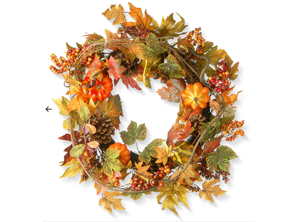 National Tree Company Harvest Accessories- 24" Maple Wreath with Pumpkins- Pack 1/4- Reshippable Inner Box
