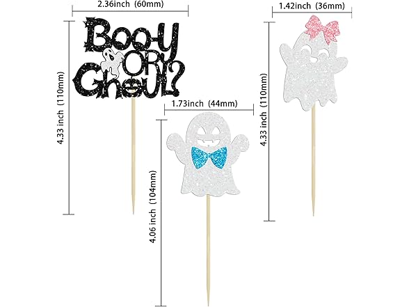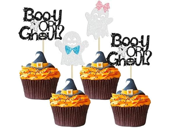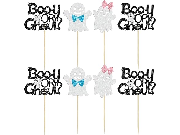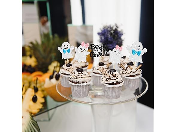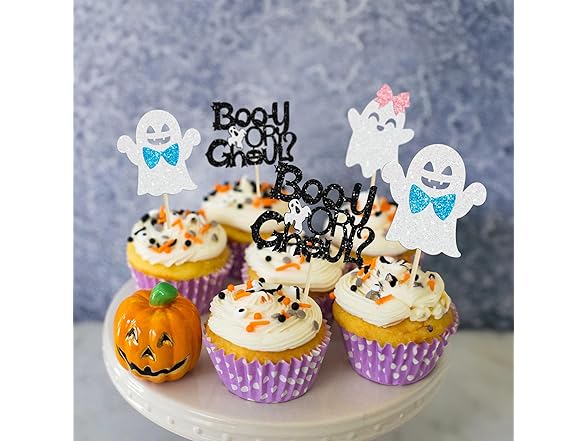 Gyufise 24 Pcs Halloween Ghost Cupcake Toppers - Glitter Boy & Girl Gender Reveal Cupcake Picks - Pink & Blue Cake Toppers - Baby Shower Party Decorations