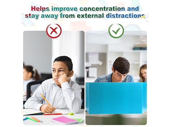 - Appropriate Size: the bright colored classroom desk divider is approx. 16 x 12 inches/ 41 x 30 cm in middle panel and approx. 12 x 12 inches/ 30 x 30 cm in side panel; The large size makes it easy for you to use or replace, and the sides are high enough to help students focus, but low enough for you to easily see student study