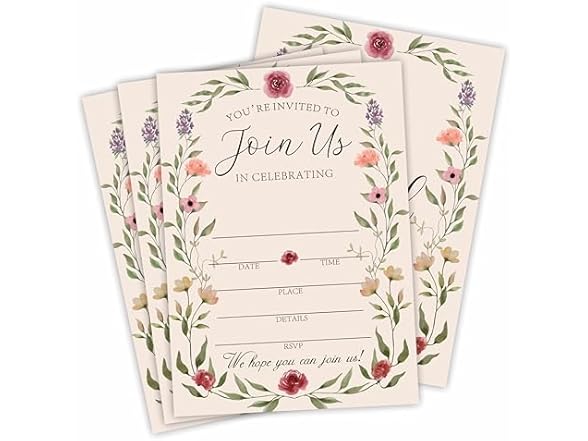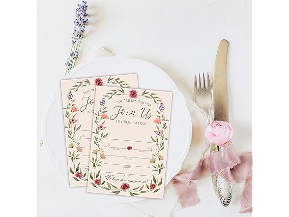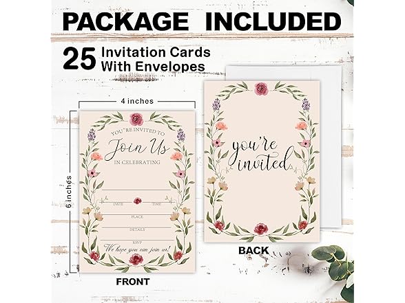 25 Rustic Wreath Wedding Day Invitation Cards With Envelopes, Floral & Greenery Double-Sided Fill In Style Wedding Reception Cards For New Couple, Engagement,Bride & Groom,Party Favor & Supplies- A10
