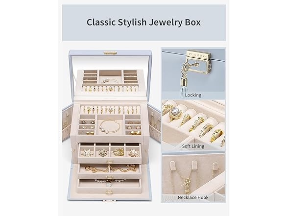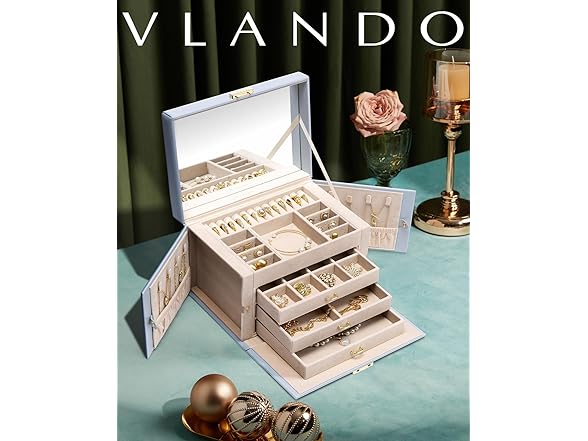 - Full Protect Jewelry - The delicate metal lock design protected jewelry in the box. Jewelry wrapped in soft velvet lining, your treasures will be fully protected in Vlando jewelry case. The jewelry always protected like new.