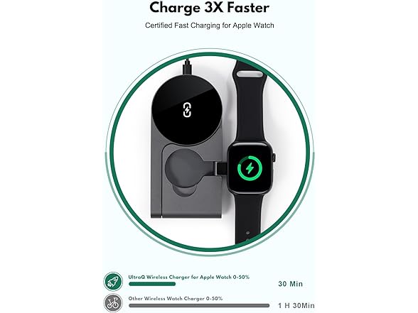 - ⌚ Apple Watch Fast Charge Certified – Series 10 Ready Officially certified for Apple Watch fast charging, juice up your Series 10 from 0% to 50% in just 30 minutes. Backed by extensive internal lab testing to ensure peak compatibility and reliability for all watch models.