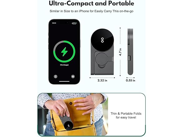 - 🧳 Ultra-Compact & Foldable Design – Travel Ready Sleek, foldable, and incredibly portable, this 3-in-1 wireless charger is smaller than an Apple Magic Mouse, making it perfect for daily commutes, business trips, or vacations. The magnetic fold lets it slip easily into your pocket or bag without adding bulk.