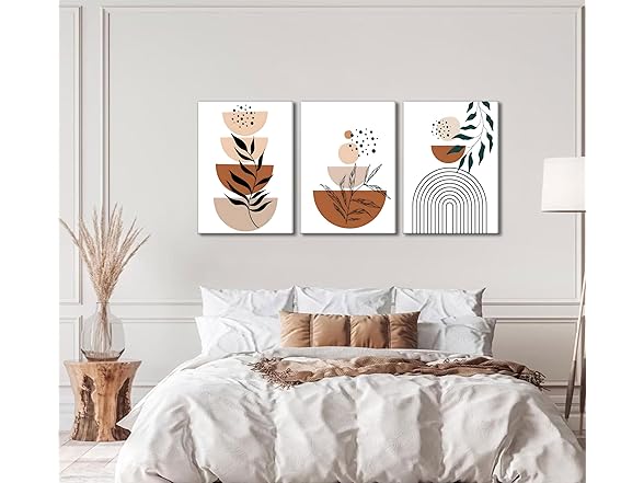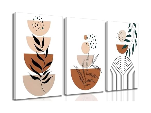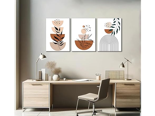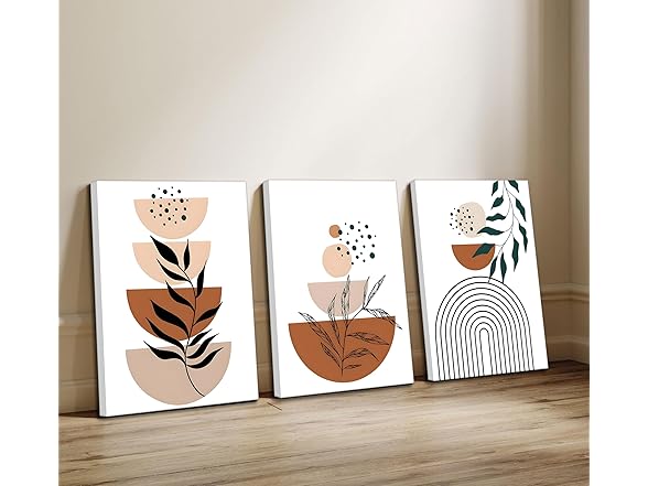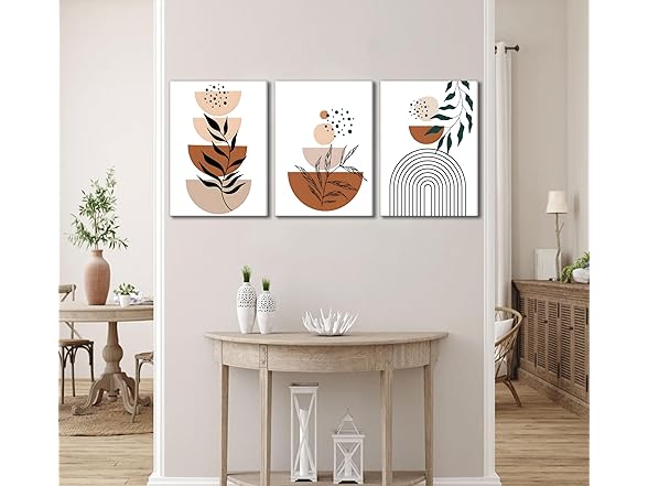 3 Pcs Mid Century Modern Boho Canvas Wall Art Neutral Minimalism Bohemia Abstract Geometric Lines Plant Pictures wall Decor Posters Print Artwork for Living Room Bedroom Office Home Decoration