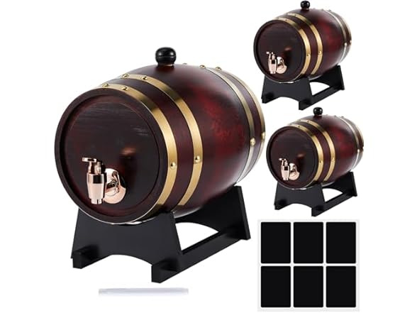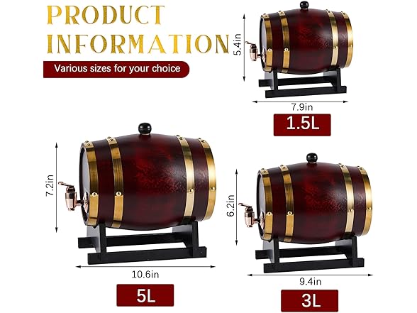 - Barrel Combination Set: the drink whiskey dispenser comes with 3 different capacity barrels of 1.5 liters, 3 liters, and 5 liters, to meet your different needs; The set also includes a label and a pen for easy record keeping of the type of drink stored, enabling seamless transition between daily use and replacement