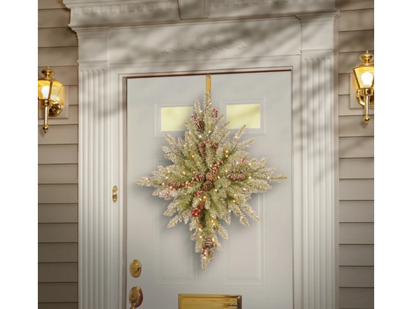 The Dunhill Fir Snowy Star features snow tipped branches and is trimmed with red berries and pinecones for added color and depth. It is pre-lit with 35 warm white battery operated LED lights with a integrated 6 hours ON/18 hours OFF timer. Display this unique decoration on a door, wall or window in indoor or covered outdoor locations.