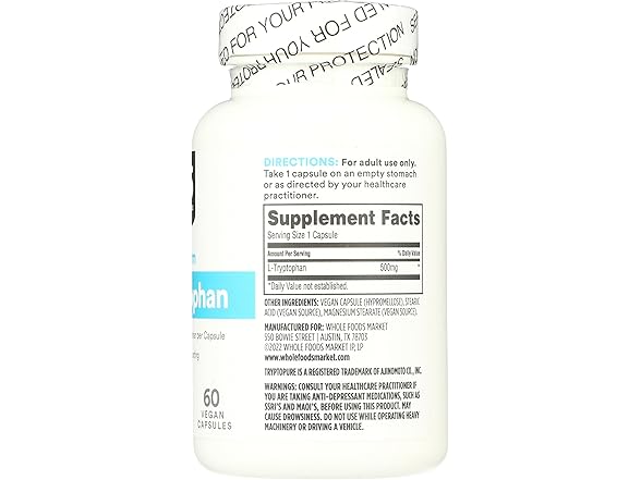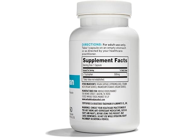 365 by Whole Foods Market, Free-Form L-Tryptophan 500mg, Vegan, 60 Capsules