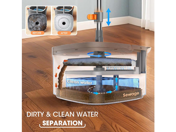 Upgrade your floor-cleaning routine with the Spin Mop & Bucket System, designed with an innovative clean water and sewage separation system. Unlike traditional mop buckets that reuse dirty water, this advanced design keeps clean water separated from wastewater, ensuring only fresh, pure water touches your floors every time. Plus, it uses only a small amount of water, helping you clean efficiently while saving water.