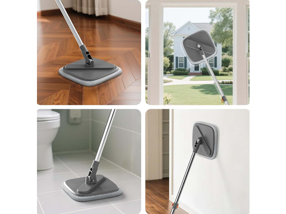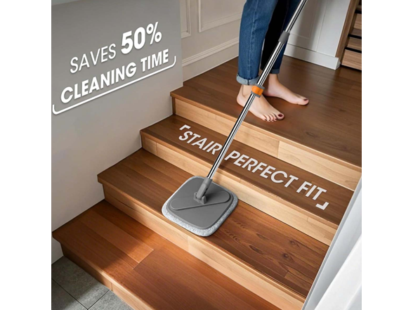 The mop includes high-absorbency microfiber replacement heads that easily trap dust, hair, and stains. It’s ideal for both wet mopping and dry dusting, making it safe and effective for surfaces like hardwood, laminate, tile, glass, and more.