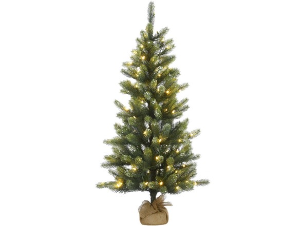 National Tree Company 4.5' Feel Real® Trinity Spruce in Burlap Base w/ 100 LV Warm White LED Lights-UL/CUL