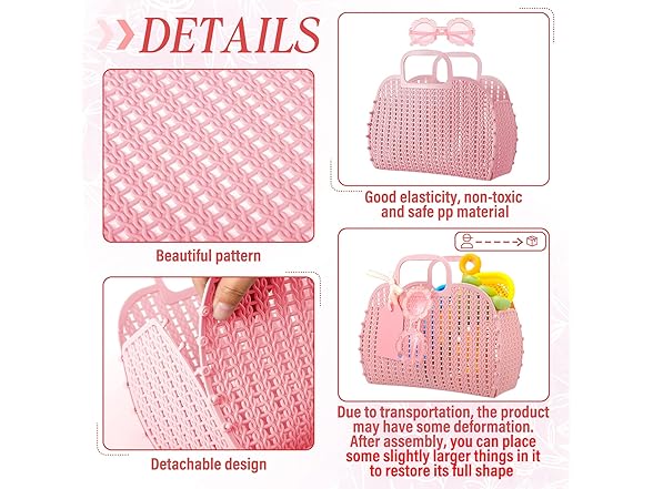 - Decent and Considerate Present: our plastic baskets with handles set adopt pink as the main color, elegant and charming, ideal for you to send to your daughter, sister, niece, granddaughter and more, which can also be applied as school awards, party rewards, Christmas gifts, carnival prizes
