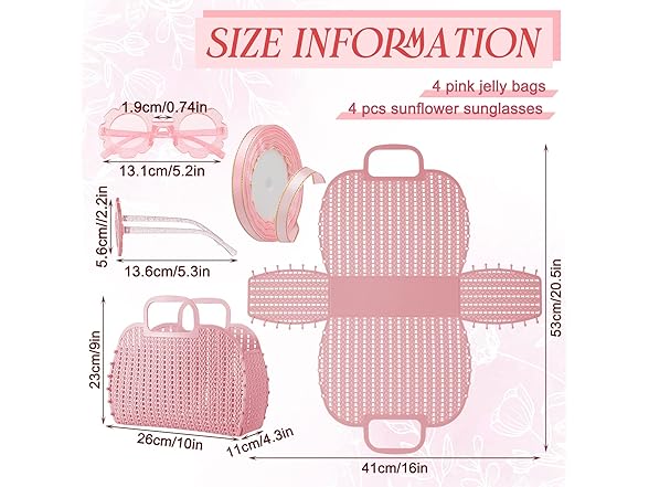 - Beach Basket and Sunglasses Set: the package comes with 4 pieces of little girls purses, 4 pieces of flower girl sunglasses, 10 pieces of pink cards and 1 roll of ribbon in total, abundant in quantity, bright and vibrant, suitable for daily and summer beach decorations