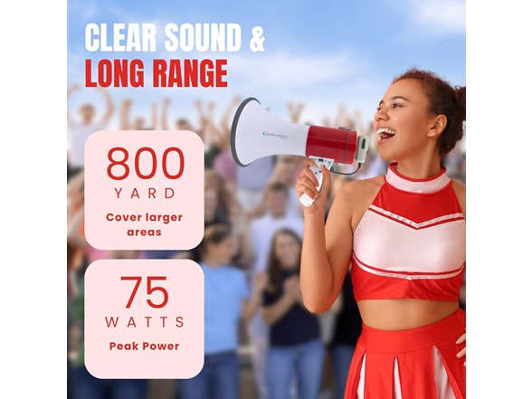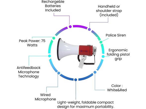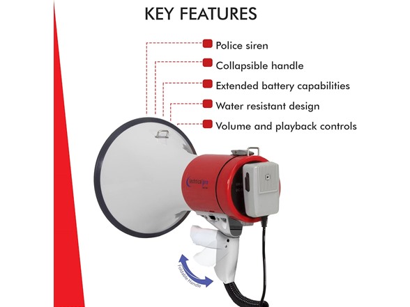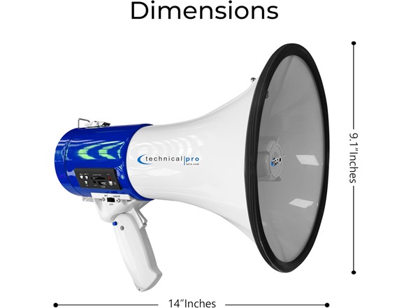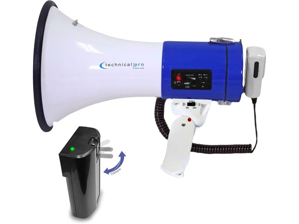 Technical Pro 40W Handheld Megaphone – Detachable Mic, Recording Feature, Siren, Rechargeable Battery Option, 5-Hour Use