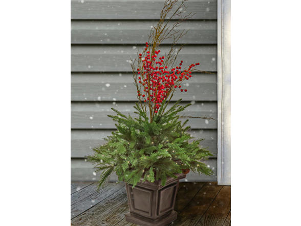 National Tree Company 48" Core Greenery- Decorated Core Urn Filler with FRP Urn- 100 Warm White Battery Operated LED Lights w/ Remote Control- BAT- Pack 1